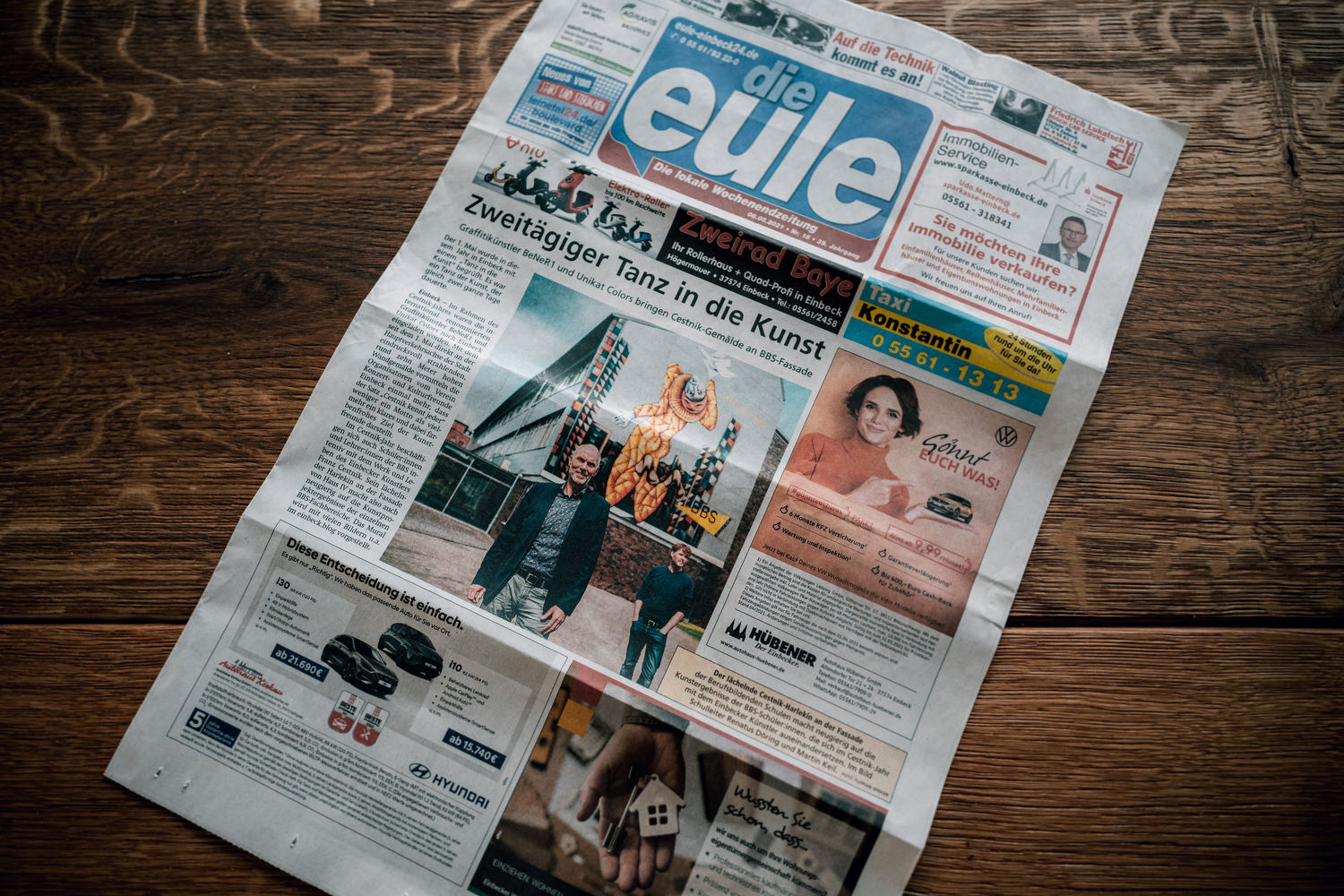 Die spontanen Video-Anfragen häufen sich derzeit doch sehr – wunderbar. Anfang Mai wurde im Rahmen der „Cestnik kennt jeder“ Aktion hier in Einbeck ein Bild des Künstlers Franz Cestnik auf die Hauswand der BBS Einbeck übertragen – und zwar in Form eines Graffiti!