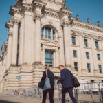 U55, Brandenburger Tor, Paul-Löbe-Haus, Reichstagsgebäude und wieder zurück unter die Linden – und das Ganze mehrmals ergeben gut 12 Kilometer zu Fuß am ersten Tag. Dazu hatten wir, wie wohl in ganz Deutschland, allerbestes Wetter. Im Sakko leider nicht immer ein Vergnügen 😉