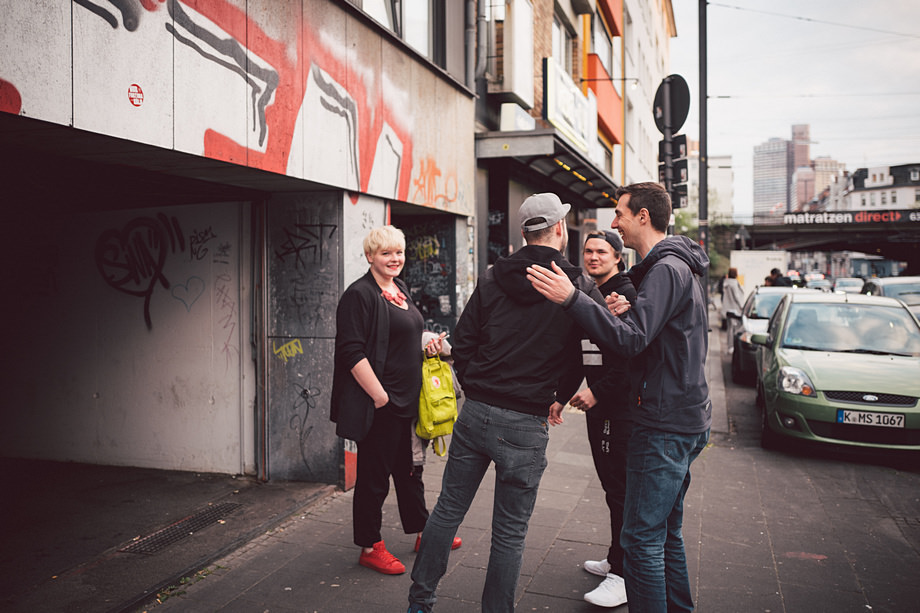 Im Club Veedel mitten in Köln ging die Sache dann also scharf. Ben erzählte ein wenig rund um das Buch und den Inhalt, im Club selbst hingen einige der Fotos aus dem Buch aus. Die Band Schafe & Wölfe gab ein kleines Konzert und die Jungs von NACHEINS (alles Freunde von Ben) präsentierten ihre neuen Shirts und überhaupt war es einfach eine gute Atmosphäre mit feiner Musik und einigen Kölsch. Und: ich traf nach 7 Monaten auch jemanden von der Ripkedemy wieder 🙂 Die Dani war ebenfalls angereist, was mich echt freute.