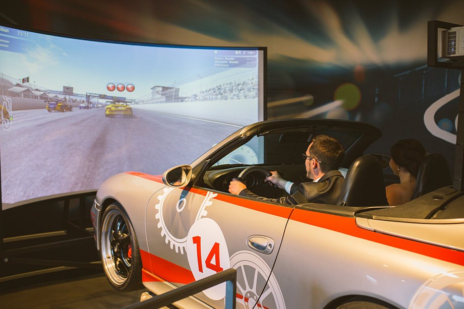 Nach dem Getting-Ready und der Trauung in Dassensen wurde im PS.SPEICHER gefeiert. Auch mal eine Premiere für uns, denn sonst waren wir dort nur zu anderen Anlässen. Auch hier ein Vorteil, wir kannten die Location bereits und wollten natürlich auch unbedingt in der Ausstellung ein paar Fotos mit Anne und Torsten (und Jette) machen. Nach einer kleinen Tour durch die Park, kamen wir schließlich auch noch dazu, perfekt. Die Gäste vertrieben sich die Zeit im Porsche-Simulator oder beguckten die Ausstellung.