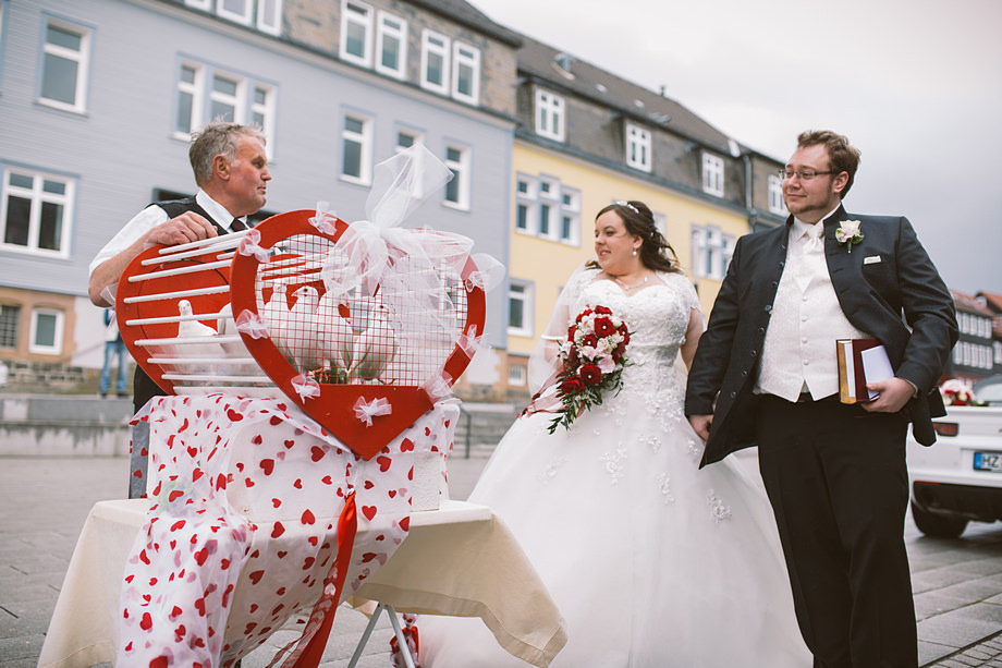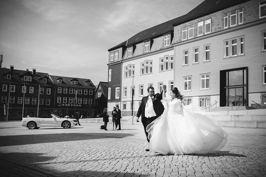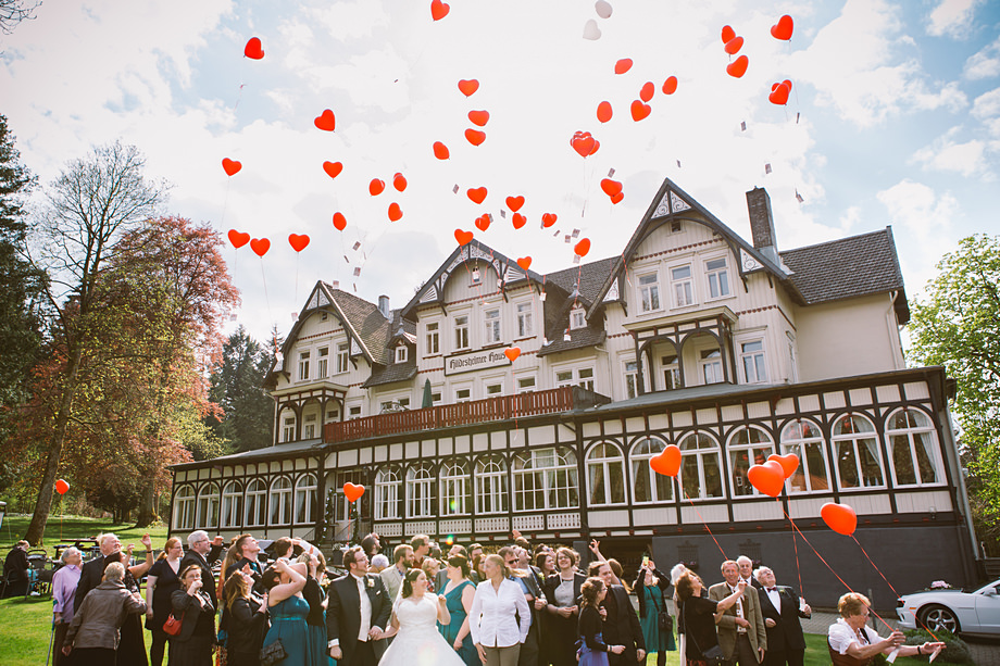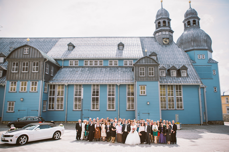 Ort des Geschehens war das Haus Hildesheim in Clauthal-Zellerfeld – ein riesiges Gebäude mit einem netten Charme. Zur Trauung düsten wir zur Marktkirche „Zum heiligen Geist“ (die größte Holzkirche Deutschlands übrigens). Sie bot schon ein tolles Motiv mit ihrer blauen Fassade. Erste Paarfotos machten wir dann auch direkt dort und später noch ein paar in der Gartenanlage der Location. Und auch drumherum gab es so Einiges zu fotografieren, so wie wir es mögen. Viele Grüße an dieser Stelle in den Harz!
