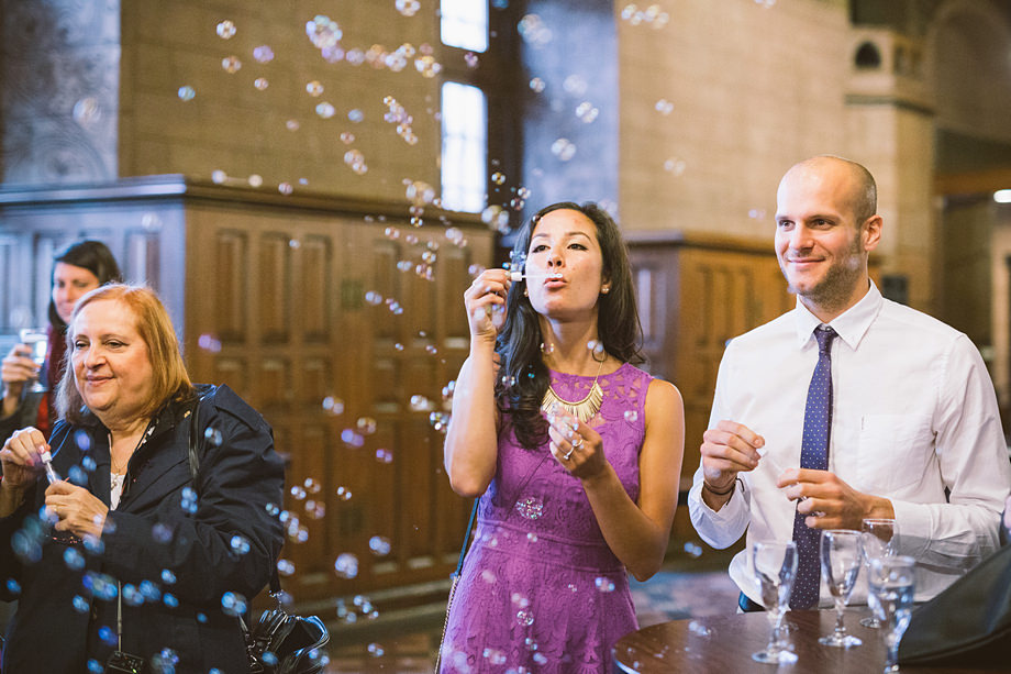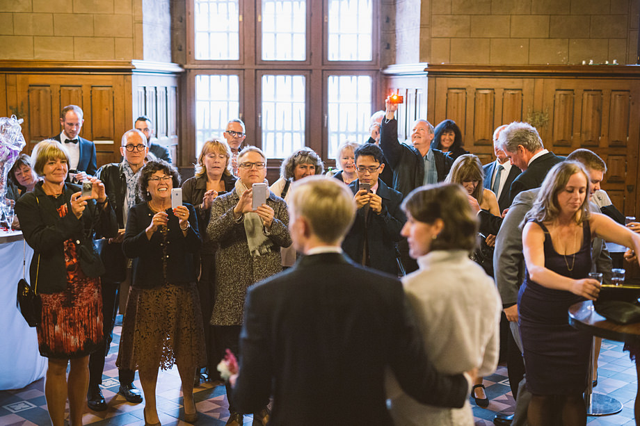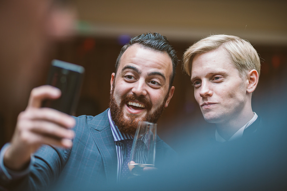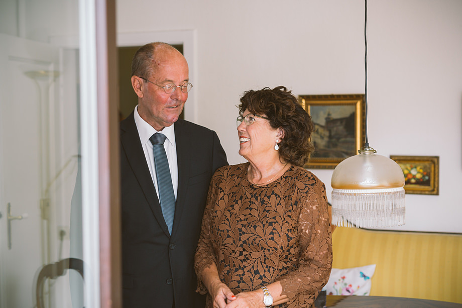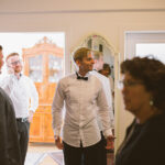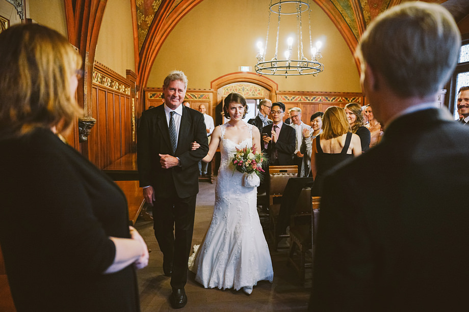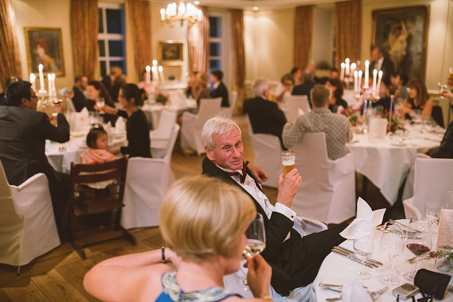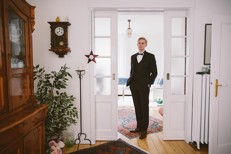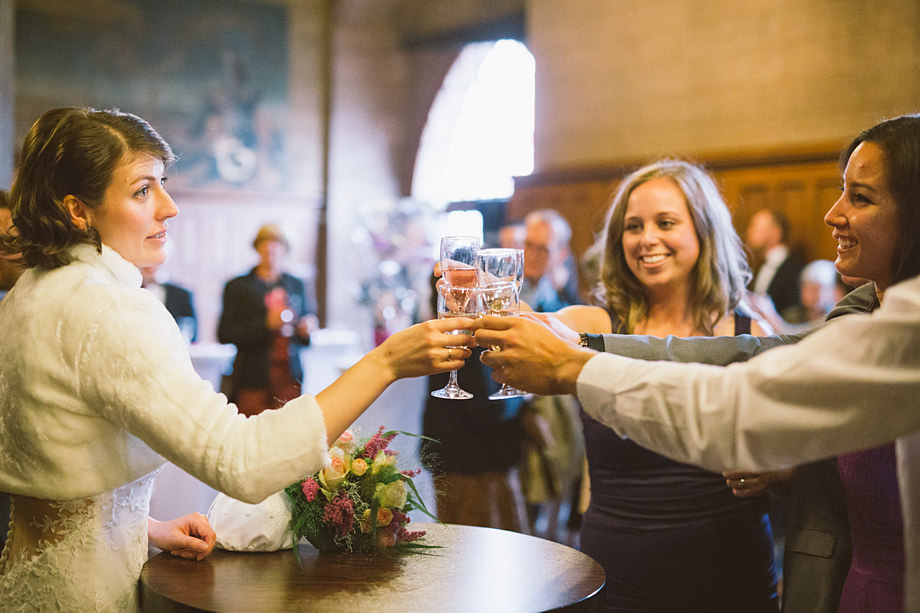 Die Trauung fand im schönen Standesamt direkt in der Innenstadt statt. Die Location kannten wir ja bereits, aber ich muss echt sagen, sehr hübsch für ein Standesamt. Die Zeit bis zur Trauung verbrachten wir wieder getrennt. Annette besuchte Elise in einem Hotel und ich war bei Andi. Hier herrschte dann richtig Betrieb. Gäste kamen, alle machten sich fertig, die Weizenbier-Temperatur wurde geprüft … da verging die Zeit doch ziemlich schnell 😉 Auch an diesem Tag mussten wir übrigens den deutsch-englisch Mix vollführen, da die Gäste ziemlich international waren. Total gut und immer lustig diese Situation.