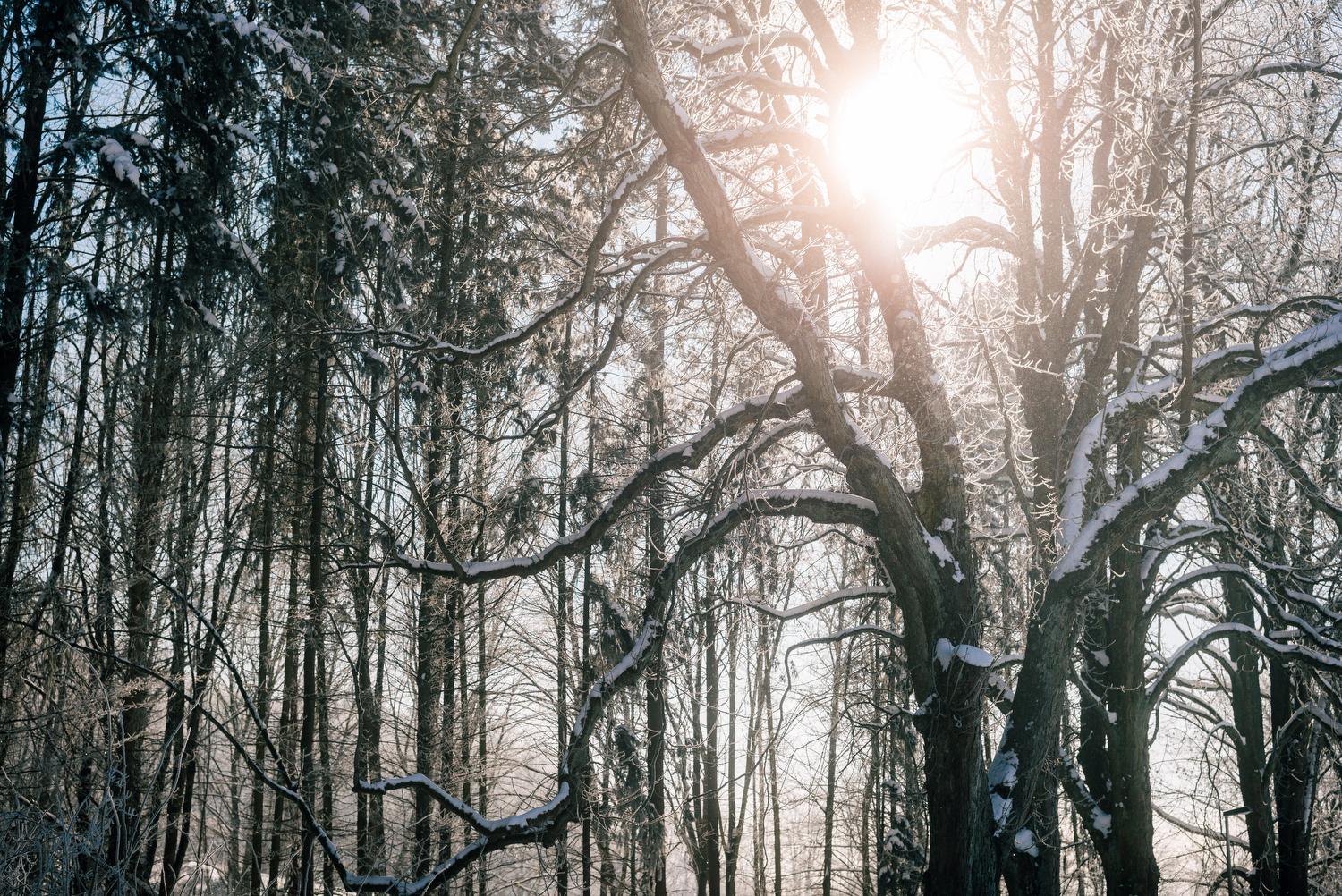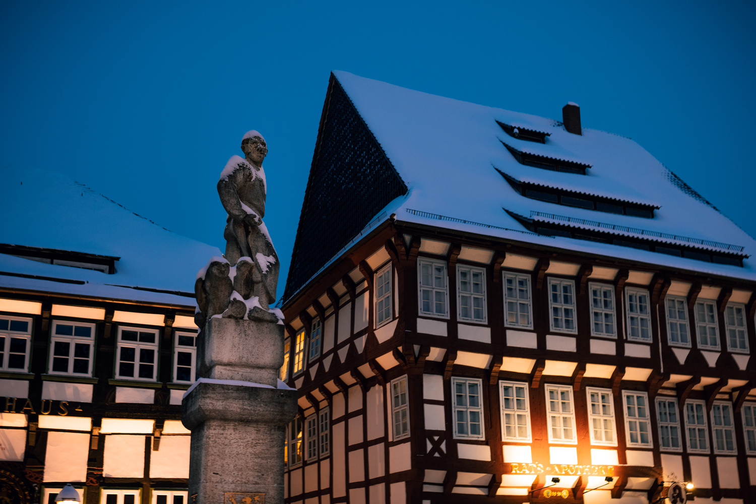 Aber egal, wenn das nun schon so selten ist, dann muss man auch ml ein Foto machen, oder ein paar mehr. Also habe ich in der Innenstadt ein bisschen fotografiert und später auch, dick eingepackt, im Wald.